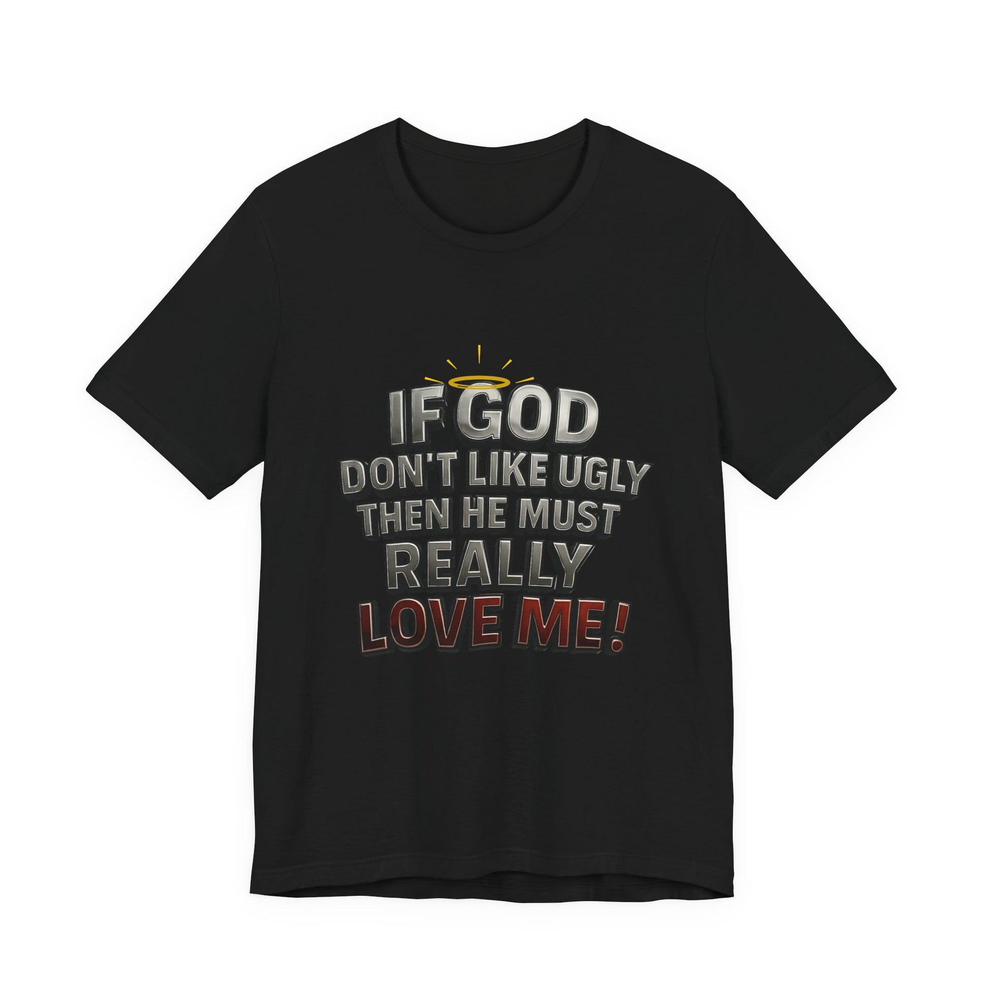 Funny Christian T-Shirt - If God Don't Like Ugly, Love Me! Humor Tee, Unisex Jersey Tee, Gift for Friends, Casual Wear, Faith-Based Apparel